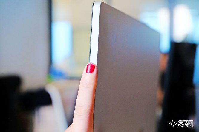 简洁的机身没有任何多余的开孔,就连开机键都被摆放到了屏幕的侧面,与Surface Pro以及Surface Book一样,Surface Studio机身只配备有电源键和音量调整键,侧置的位置正好对应了普通人坐下抬手的高度。唯一的问题在于,电源键和音量键的位置靠得有些近,许多次想要调低音量时,都一不小心按到了电源键,事实上在使用Surface Book时我就时长有这样的尴尬。
