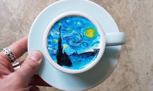 这货把咖啡做成了梵高 看完第一张就跪了