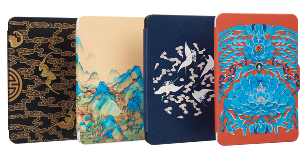 这次是与已经推出了众多网红周边的故宫博物院合作。他们一同设计了四款Kindle的保护套,设计元素全部取材于故宫藏品,比如北宋王希孟唯一传世的作品《千里江山图》、清代石青色云龙纹妆花缎朝袍等。
