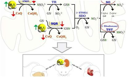 研究人员证实在小鼠和人类体内,细胞产生的硫化氢是由一种被称作硫醌氧化还原酶(sulfide:quinone oxidoreductase, SQR)的线粒体酶所使用的,其中SQR参与每个组织中的细胞的能量产生。