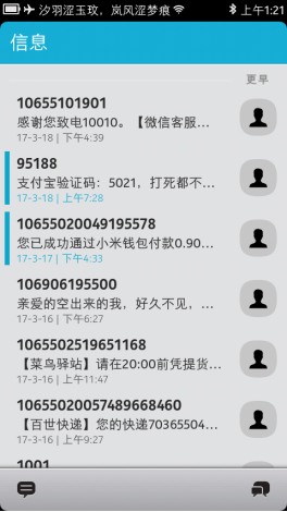 还有就是N9的短信会话界面和现在的正好颠倒,发件人在右边显示。