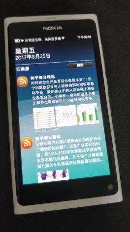 N9主页(类似于现在流行的负一屏)被我用来订阅了知乎每日精选的RSS,宿舍断网的时候看些有趣的新闻还是蛮不错的。