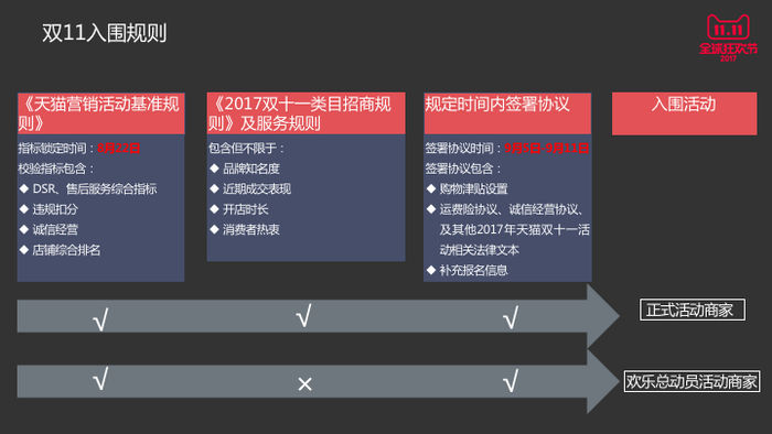 2017双11招商8月28日正式开启,天猫小二为商家们拎出重点,详细讲解今天双11招商规则的变化。