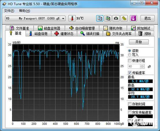 华为原装数据线,曲线有少量大波动,传输速度整体比较稳定,占用率稍高。