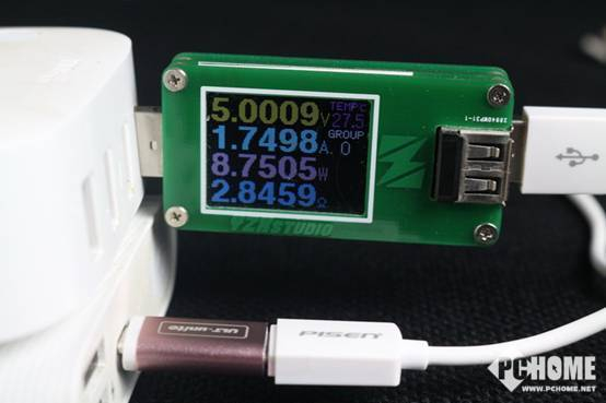 品胜Type-C数据线,稳定传输电流为1.74A,等效8.75瓦,阻抗2.8欧姆。