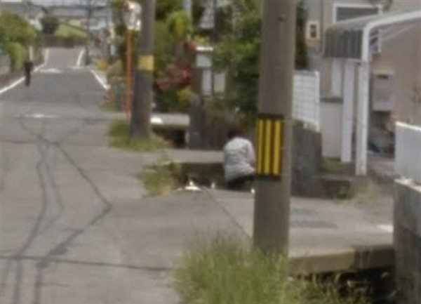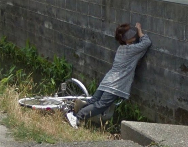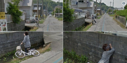 谷歌街景拍下日本大妈掉进水沟画面