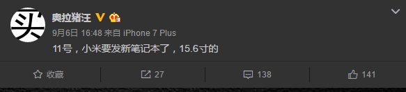 目前有关这款小米笔记本的具体配置我们还不得而知,但是如果 9 月 11 号会有多款产品发布的话,那么这场发布会还是让人相当期待的。
