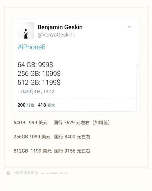 iPhone 8全系列价格曝光 顶配版接近万元