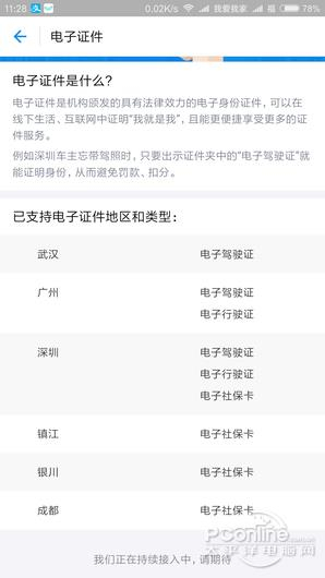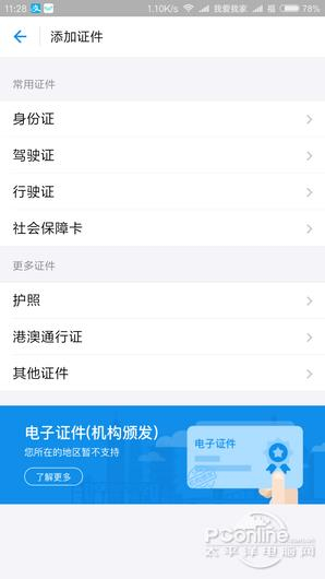 有些证件还可以当电子证件使用,也就是当原件使用,可惜的是目前支持电子证件的城市还不多。电子证件是时候普及了,出门不用带着那么多证件还怕丢。