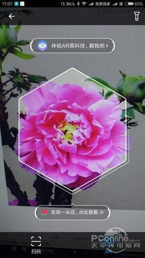 而扫一扫中的AR功能,不仅可以触发AR,还能进行扫花识花,还有就是可以通过门店互动扫描标识获得优惠券。