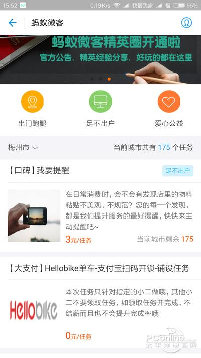 还有一个能赚钱的内容就是“蚂蚁微客”,完成指定任务可获得酬劳,基本上是叫你去某店铺转转拍张照。