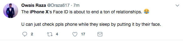 owais:iPhone X的人脸识别可能会终结很多段感情,想要偷看对方的手机,你只能等他们睡着了将手机对准他们的脸了。