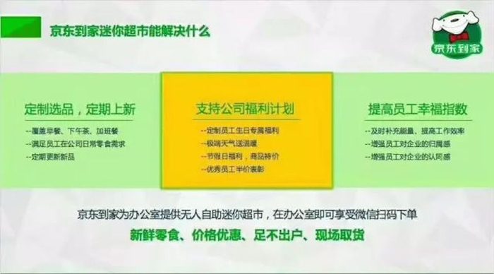 另外《联商网》还了解到,企业引进京东到家无人值守迷你超市只需要提供拜访设备地方,所有商品均由大型供应商提供,新鲜保质设备,商品丢失损坏无需担责,京东到家全权负责商品采购,活动经营,定期安排补货,配送,理货,同时货架冰箱,和其他设备均免费投放,零押金。