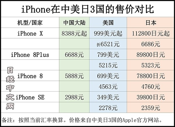 iPhone 8/X中国/美国/日本售价对比!差距好大