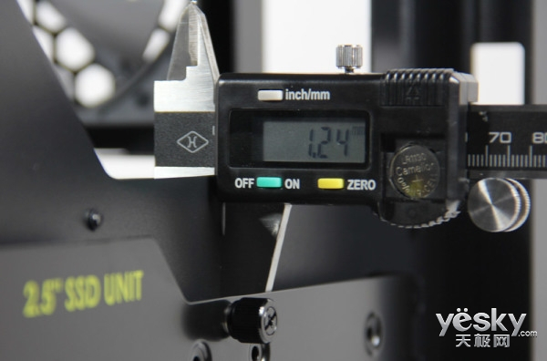 首先测量内部侧板的厚度,结果显示达到惊人的1.24mm,比官方1mm的参数还要多出不少。