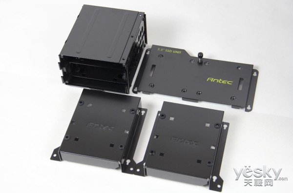或许还有DIY用户不明白,安钛克P110机箱各部分细节的创新和优化会带来哪些实质性的使用体验改善?其实细数起来,真的不少,例如可拆卸的硬盘模块,最多支持6个3.5英寸硬盘的安装,自打前年普及的ATX2.0结构以来,机箱支持3.5英寸硬盘的数量锐减,一般最多支持3个,而安钛克P110竟然能在不改变结构的情况下,支持多达6个,并且都是可拆卸模块化设计,完全表明这一设计非常用心,即使作为需求超大容量的工作站机箱都能够胜任。