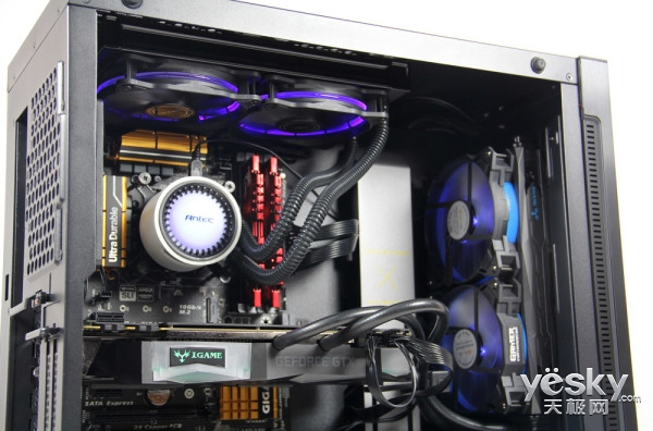 安钛克P110机箱内部空间十分充足,对各种高端硬件的兼容性极佳,能够简易完成安装。主仓内部线材并不多,随手安装也不会显得杂乱,一体式水冷的安装毫无遮挡,相信打造高端分体式水冷散热系统,P110机箱的空间依然是游刃有余,轻松胜任。