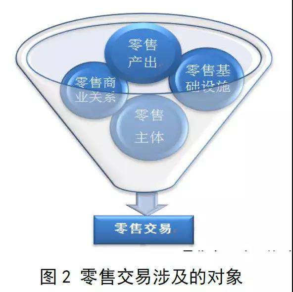 商品交易涉及到商品交易的主体、客体、载体以及商业关系等内容,对应到零售交易中是:零售活动的参与主体,零售活动的产出,零售活动的基础设施,零售组织与上游供应商、下游消费者、行业内竞争者之间的关系。