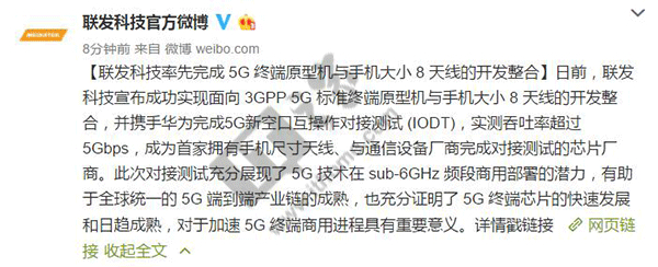 下行速率超5Gbps,联发科宣布全球首个5G原型手机通过验收
