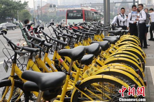 成都一地铁站共享单车“车满为患”
