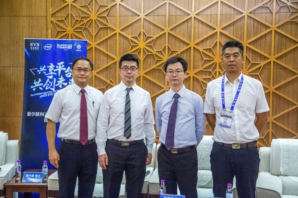 从左至右:晋弘科技(台湾)股份有限公司董事长暨联合创始人郑竹明、英特尔数据中心医疗与生命科学集团亚太区负责人张晓波、湖南极视互联科技有限公司总经理徐鸣、湖南极视互联科技有限公司副总经理、CTO孙涛