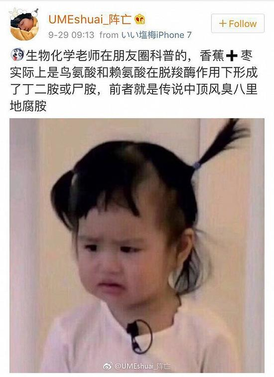 前段时间冬枣+香蕉的暗黑传说在微博刷屏了,有诸多网友纷纷分享了自己的吃后感受!描述也是五花八门,“吃过之后,蕉枣不安”,“醍醐灌顶的屎味”,“走马灯没看到,我看到了人生的红灯”,微博上不少网友都纷纷描述了自己试过之后被臭到的感受。但也有网友表示“一连吃了十根香蕉、一斤冬枣也没吃出什么怪味”!