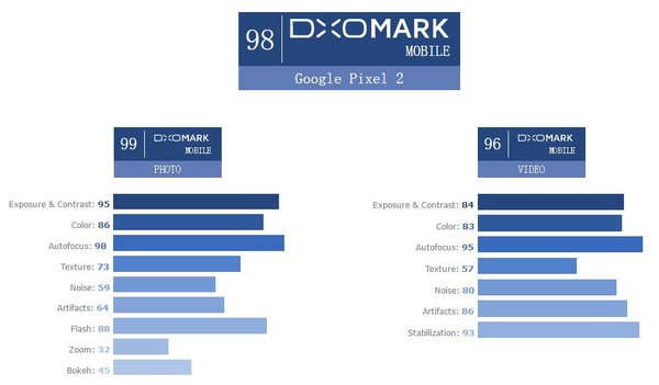 如果你怀疑谷歌的选择是否正确,那么公认最权威的第三方测试机构DxOMark给Pixel 2打出98分的综合评分(迄今为止所有手机当中最高),一定会让你感到惊喜。