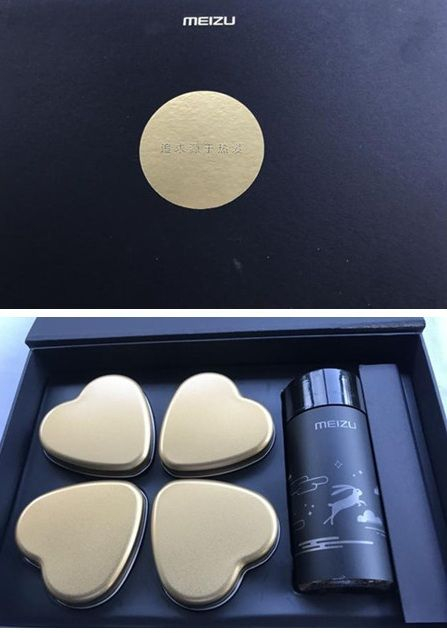 魅族月饼设计很小清新,没有太繁杂的元素,而是很简洁,魅族的LOGO下方,是一轮圆月,上面是魅族想要传递的产品价值观“追求源于热爱”,内部每一个月饼都被放在金属的心形包装盒内,还附送了一盒坚果,可以搭配着吃。
