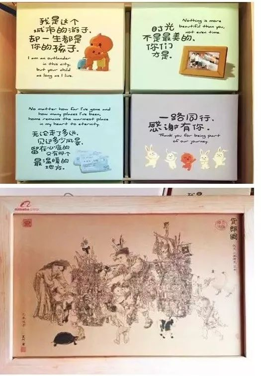 刚刚过完生日的阿里,今年的月饼礼盒主题就定为了“Together在一起”,和阿里今年成人礼的主题“ONE”相契合。月饼盒上写着阿里对员工的感谢语录。