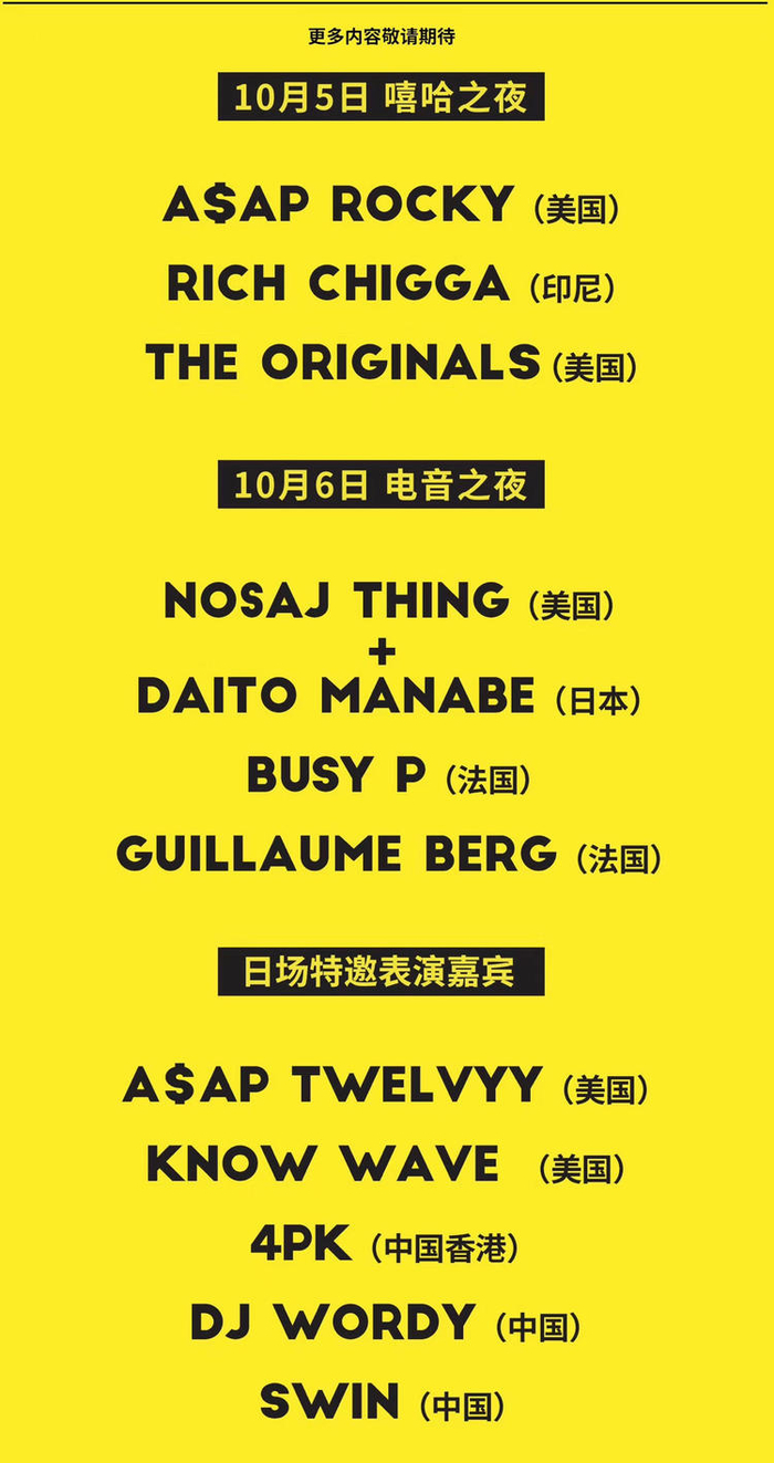 Fear of God 发售限定商品的快闪店;由 A$AP Bari、A$AP Rocky 以及陈冠希牵头成立的 VLONE 新款发布;NIKE LAB 最近与 Off-White 主理人 Virgil Aboloh 联名的“THE TEN”系列展出;荷兰新晋品牌 Osbbat 联名产品发布,并请了 Lan conner 、艾福杰尼、黄旭等 Hiphop 音乐人;Converse 发售与陈冠希主理的 Clot 合作款;JAY-Z 的品牌 Rocawear;A$AP Rocky 主导的新品牌 AWGE 限定款发售;Supreme 元老店员的自创品牌宇宙电台 Know Wave ,主理人们在现场搭了一个录音棚录节目......
