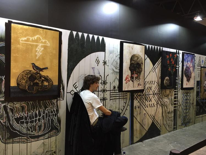 插画艺术家 KELLY MARIE BEEMAN 展示了自己的作品,并且会在现场挑几个人画画像。陈冠希提到过很多次的朋友,文身艺术家 SCOTT CAMPBELL ,也会在展区里每天挑四个人文身,你只需要把手伸到墙里去,至于文身师会文什么就看他心情了。