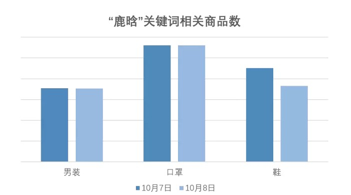 在10月8日鹿晗的恋情曝光之后,与鹿晗关键词相关的在线商品数量,反而相较前一日有所下降。
