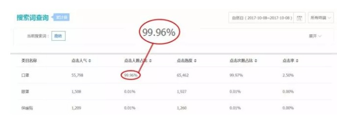 综合所有10月8日“鹿晗”相关的搜索,数学委员吃鲸地发现,居然有超过99%的人都浏览了口罩!