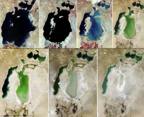 但由于过度棉花种植,拥有550万年历史的咸海,2014年南咸海的东部流域已经完全干涸,一点一点,变得像沙漠一样死寂。