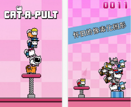有没有尝试过用8位图形的可爱猫猫堆出一座巨塔?!拖动手指给猫猫蓄力,然后将它们发射出去!多重复几次就可能成功!你建成了!