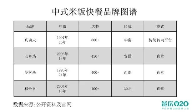 传统米饭快餐巨头主要有:真功夫、老娘舅、安徽老乡鸡、重庆乡村基、北京和合谷100...。
