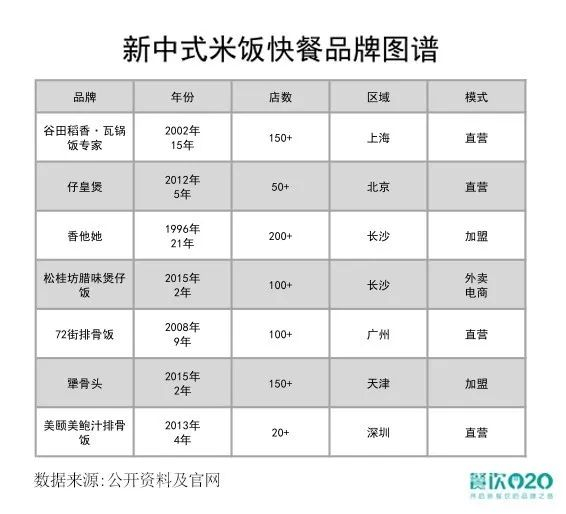 虽然传统中式米饭快餐难挡没落之势,不过市场上也出现了新中式米饭快餐的另类崛起,主要玩家有:
