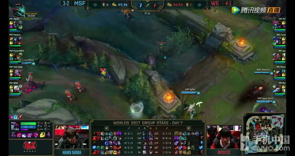 如图所示,当英雄处于同一地图位置时,努比亚Z17S的确会比普通手机多显示一些地图画面。对于农药老司机来说,多出的视野意味着什么就不用我多说了吧。