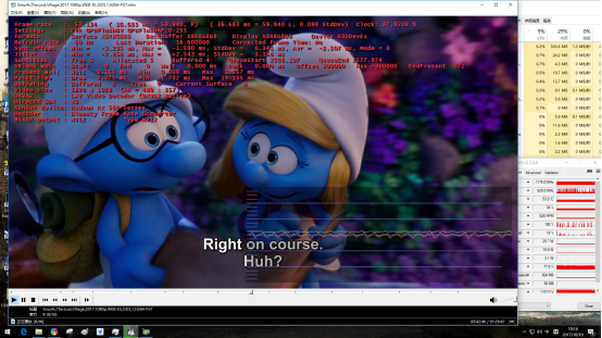 开启SVP插帧以后的同一视频,右上角显示的帧数是59,果然是蜜汁丝滑啊。