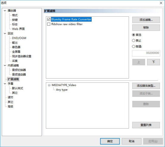 再到MPC播放器里面将Bluesky 的滤镜添加并首选就可以使用了。