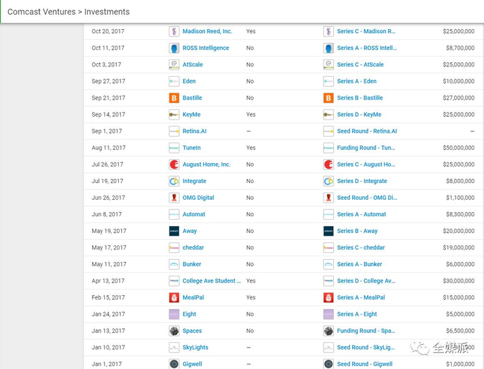 康卡斯特集团是美国最大有限电视公司,同时也是美国第二大互联网服务供应商。 康卡斯特资本是其集团旗下的投资基金。该基金今年一共投资了21个项目,其中包括美发服务供应商Madison Reed、配匙服务提供商KeyMe、智能门锁提供商August Home、现代旅行模式旅行箱供应商Away等生活场景适用品牌。