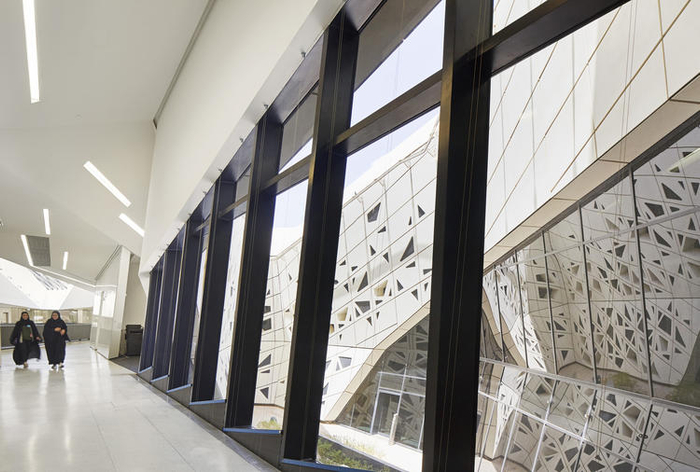 不仅如此,这些建筑的外观设计坚固耐用,足以抵抗沙漠地区的极端天气,建筑表层形似细胞的诸多小型窗户,可以把阳光轻柔地引进室内。由于建筑本身耗能较低,并且充分考虑到了当地光照和气温的影响,它被称作是沙特最“聪明”的建筑,也是扎哈事务所首个获得美国绿色建筑委员授予 LEED 认证的项目。