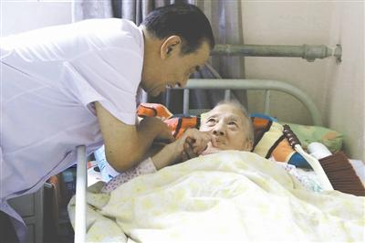 这天,他转到了3楼的一间病房,来看望93岁的黑奶奶。虽然头发早已全白,牙齿掉光了,行走也不方便,但一看到李伟出现,黑奶奶就满脸笑容地朝他招手,眸子里闪着光。