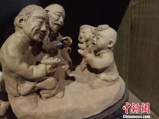 中新网兰州11月12日电 (艾庆龙 闫姣)“这个泥塑的原形是我小时候过年的场景,那时候,小山村因为没有钱,不像县城或者镇上那样唱大戏、耍社火,我们只是在小山村里放炮仗、在炕上听故事。”兰州七旬民间艺人岳云生指着一个泥塑介绍道。