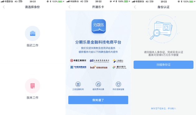 具体而言,用户第一次注册分期乐之后,如果选择自己的身份是‘未工作’,系统会直接把用户所有的借贷对接给持牌金融机构,这包括商业银行和‘持牌的金融合作伙伴’。