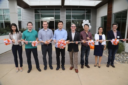 滴滴CTO张博、美研负责人弓峰敏、与中国旧金山总领馆王红霞领事、山景城市长Ken Rosenberg、苹果公司副总裁Adrian Perica、斯坦福教授Silvio Savarese以及合作伙伴共同在National Avenue 450号门前完成剪彩仪式。