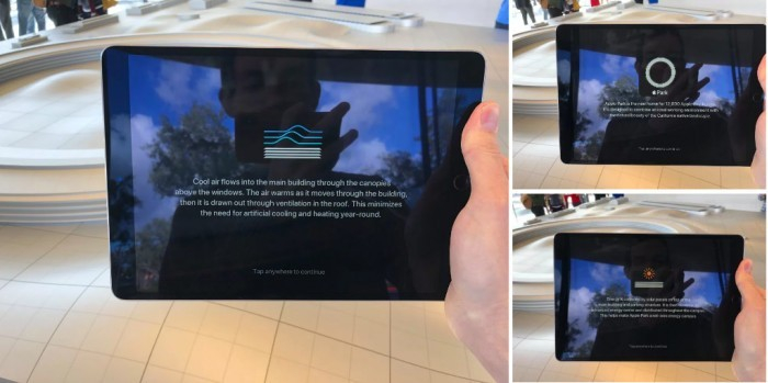 苹果新总部的游客中心里令人印象最深刻的亮点是专门为增强现实而设计的 Apple Park铝制模型,在 AR 中可以查看Apple Park竣工后的全貌。怎么样,是不是很神奇,满满的科技感。