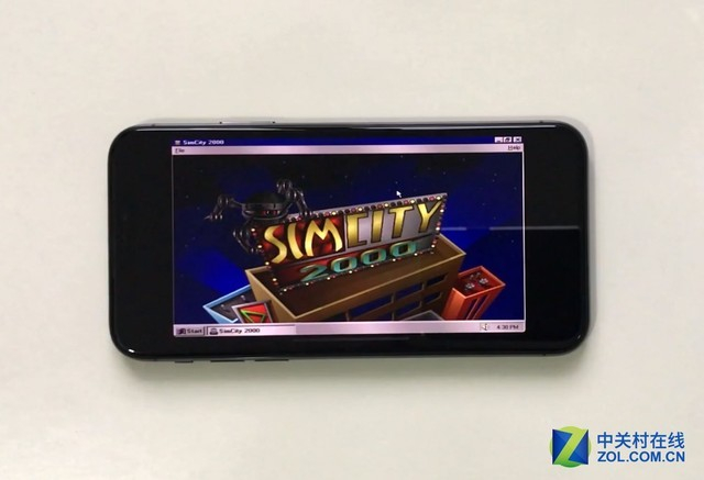 随后该玩家又在运行Windows 95操作系统的苹果iPhone X手机上运行了经典的单机游戏《虚拟城市2000》。