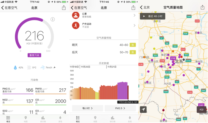 这两天北京的空气质量又到了中度污染的状态,北京市也发布了空气污染蓝色预警。具体的空气质量指数是这样的:
