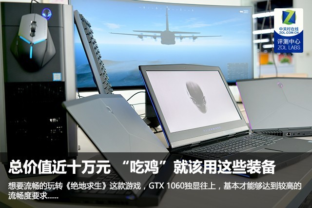 本次我们的全套Alienware“吃鸡”装备包括Alienware 13、Alienware 15、Alienware 17三个型号的笔记本电脑,以及Alienware Aurora R6台式机,同时还使用了Alienware游戏键鼠套装,以及AW3418DW专业曲面屏电竞显示器。这套装备可以用“奢华”来形容。